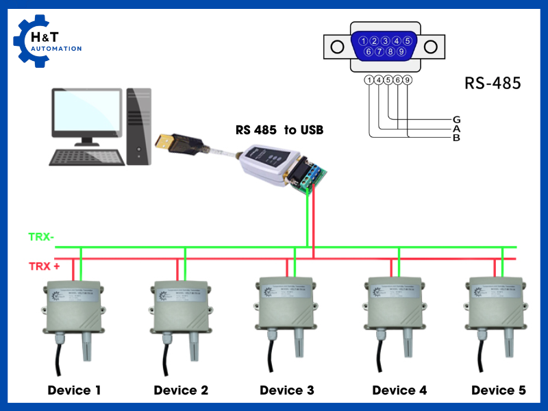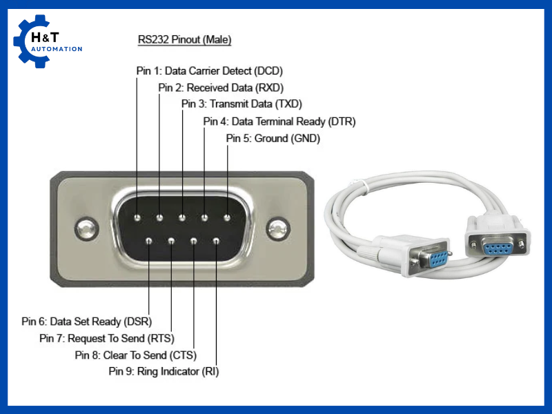 RS232: là chuẩn truyền thông nối tiếp phổ biến, ra đời từ những năm 1960, thường dùng để kết nối máy tính với các thiết bị ngoại vi như modem, máy in hoặc PLC. Chuẩn này truyền tín hiệu dạng điện áp đơn cực (single-ended), chỉ phù hợp cho kết nối khoảng cách ngắn, thường dưới 15 mét, với tốc độ truyền tối đa khoảng 20 kbps. RS-232 hỗ trợ giao tiếp point-to-point, tức chỉ kết nối 1 thiết bị truyền và 1 thiết bị nhận, rất đơn giản nhưng dễ bị nhiễu khi dùng ở môi trường công nghiệp.