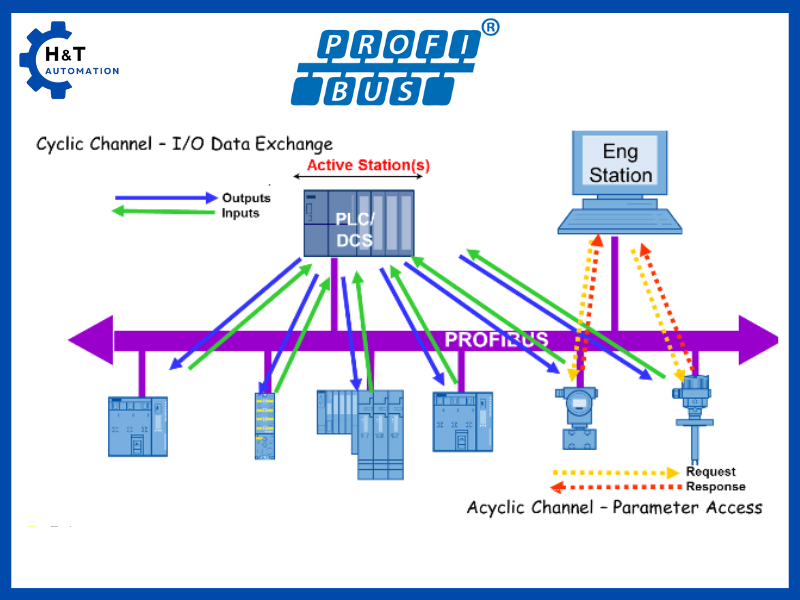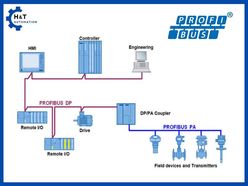 Trong thế giới tự động hóa công nghiệp ngày càng hiện đại và phức tạp, việc các thiết bị khác nhau có thể giao tiếp, chia sẻ dữ liệu với nhau một cách mượt mà đóng vai trò vô cùng quan trọng. Profibus – viết tắt của Process Field Bus – chính là một trong những giao thức truyền thông được ứng dụng rộng rãi để giải quyết nhu cầu đó. Ra đời từ năm 1989 tại Đức, Profibus không chỉ giúp các thiết bị từ nhiều hãng khác nhau “nói cùng một ngôn ngữ,” mà còn mang lại sự ổn định, tin cậy và hiệu quả cao trong vận hành hệ thống. Trong bài viết này, hãy cùng H&T Automation tìm hiểu Profibus là gì, những đặc điểm nổi bật, các loại Profibus, ưu nhược điểm cũng như các ứng dụng thực tế của giao thức truyền thông quan trọng này trong công nghiệp.